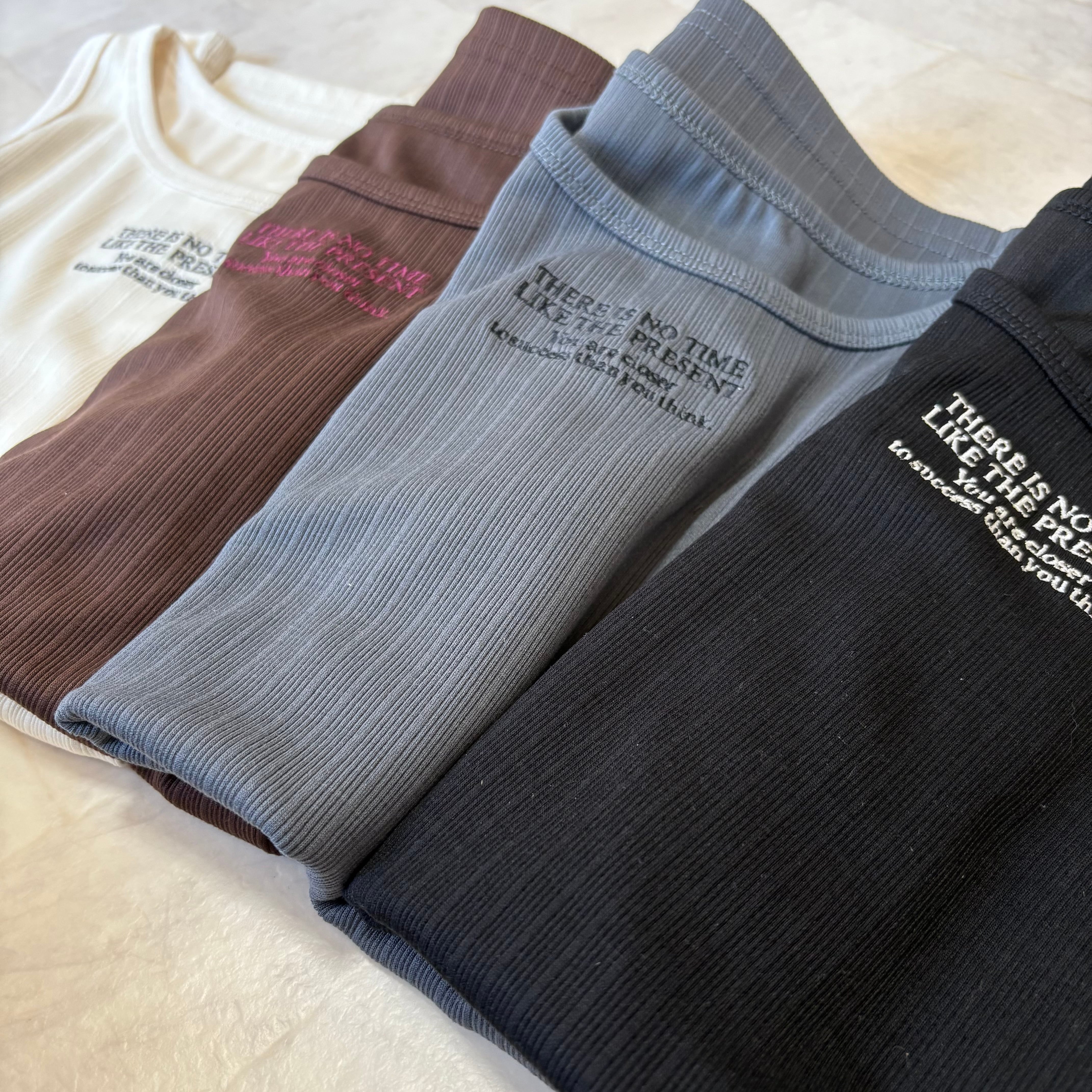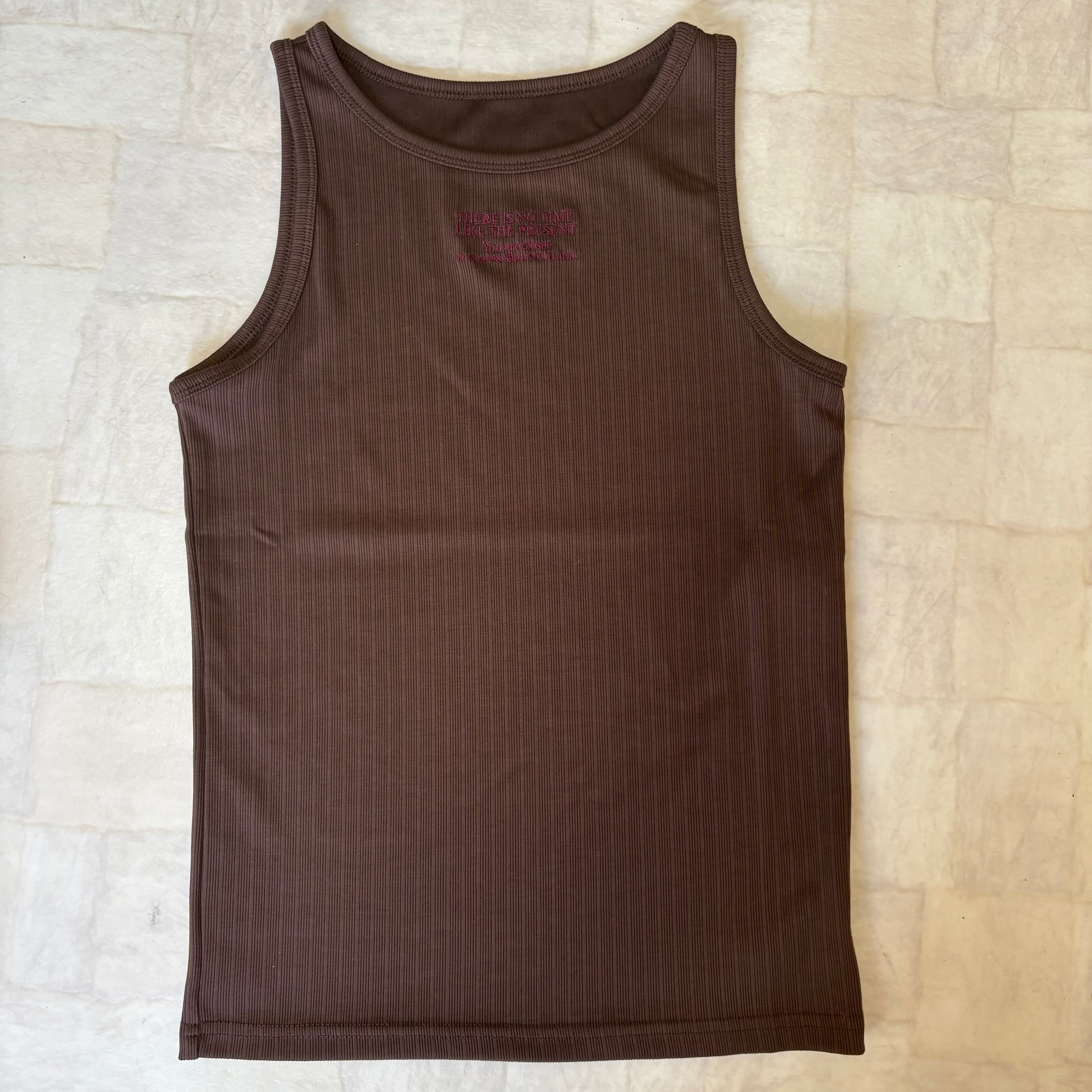 ロゴ刺繍がポイントがポイントのタンクトップ。