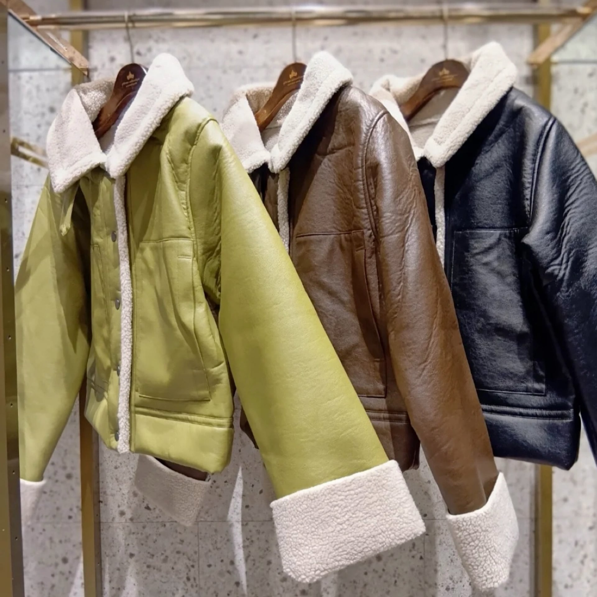 エコレザーボアジャケット→ イエロー、ブラウン、ブラック